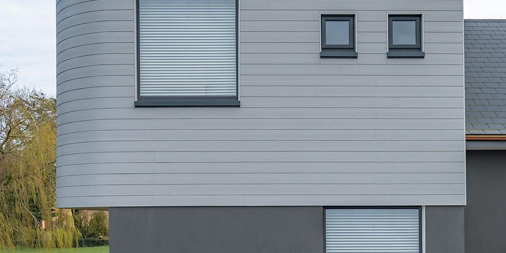 Little Island Lodge, in Offaly, Ireland is a unique home using Cedral Click in C05 Grey and also features our Rivendale fibre cement slates. The owner is a carpenter and builder who had used Cedral in the past and wanted to feature it on his own home. The curved facade makes this a truly spectacular and unique home, and resulted in it being selected for 'Home of the Year' in Ireland in 2019.