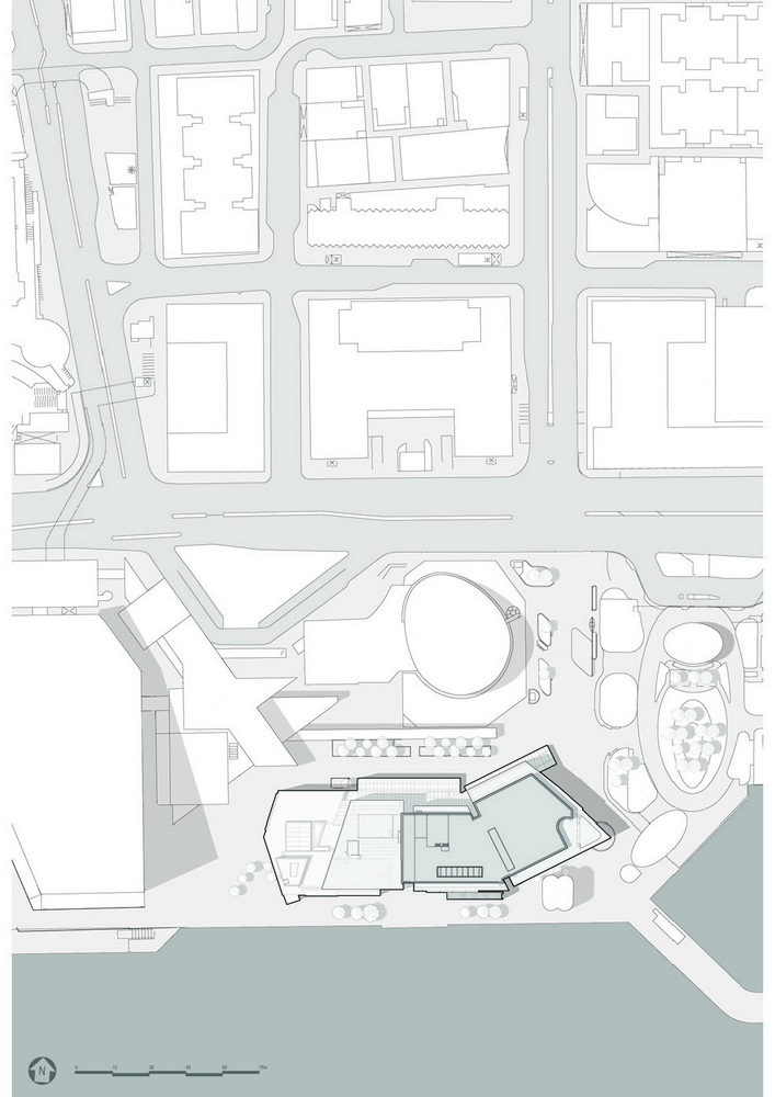 At first glance one could easily believe that Hong Kong has surreptitiously acquired a completely new Museum of Art. But in fact, the core of this museum still consists of the 23-year old building that could no longer cope with the urban design changes in its surroundings. But instead of simply erecting a new museum, the government decided to completely renovate the old building and to give it a striking extension. With this aim in mind the cubic forms of the original building were strongly emphasized and connected with the surroundings by new glazed insertions and additions. This building was also given a new hovering canopy above the main entrance and two recessed storeys as an extension. Numerous earlier additions to the introverted old building were removed, while framed glass facades extending through several storeys were made on the west and south sides and offer a view of the port and of public space. Through a variety of design interventions, a rather unexciting 1990s building faced with ochre-coloured brickwork has been transformed into a modern museum in which the new facade immediately grabs your attention. Modularity and a three-dimensional quality shape the character of the completely newly designed elements: grey fibre cement panels were cut to predetermined sizes and were mounted on site on an aluminium substructure. The completed modules were then fixed to the reinforced concrete loadbearing structure. To allow maintenance or service work be carried out they can, if necessary, be taken down individually. In conjunction with the reworked concrete facade at ground floor level and the separate framed areas of glazing in the facade, the building now conveys an exceptional impression of depth. In this sense one could truly say that an entirely new building has been made.